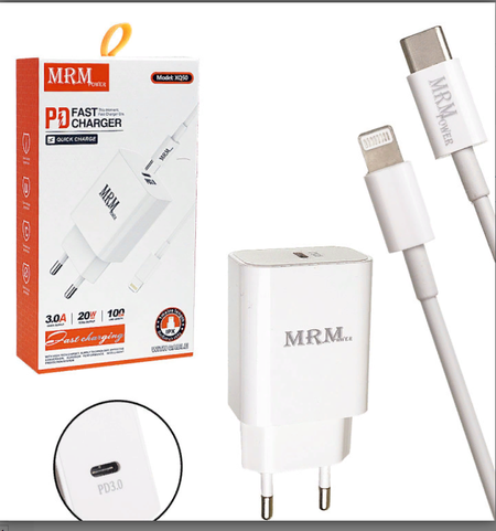 Сетевое зарядное устройство MRM XQ50 PD 20W с кабелем Type-C to Lightning 1м (White)