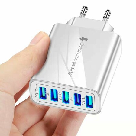 Зарядное устройство сетевое, для 5 устройств, 5USB-портов, белое