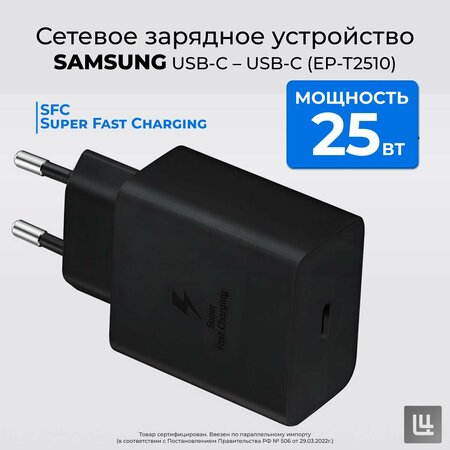 Сетевое зарядное устройство Samsung USB Type-C, адаптер для быстрой зарядки, 25 Вт (EP-T2510), черный