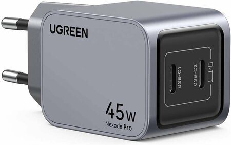 Сетевое зарядное устройство UGREEN Nexode Pro 45W USB-C+USB-C GaN Fast Charger X707 (Space Gray) 35008 - это высокотехнологичное устройство, предназначенное для зарядки телефонов и планшетов. Оно оснащено двумя разъемами USB Type-C, что позволяет одновременно подключать к нему два устройства. Зарядное выполнено из качественного пластика, что обеспечивает его долговечность и надежность. Оно не поставляется с кабелем, что позволяет пользователям выбирать кабель, наиболее подходящий для их устройств. Одной из ключевых особенностей модели является поддержка технологии быстрой зарядки и технологии GaN. Это означает, что устройство способно заряжать устройства с максимальной скоростью, при этом сохраняя энергоэффективность и безопасность. Входное напряжение 100–240В~50/60Гц, 1,2А макс. Два выхода USB-C: USB-C1 и USB-C2 имеют одинаковые характеристики: 5В=3А, 9В=3А, 12В=3А, 15В=3А, 20В=2,25А, 3,3–11В=4,05А. Общая выходная мощность устройства составляет максимум 45Вт. Устройство совместимо с различными технологиями зарядки, включая PD3.0 (PD2.0), QC4.0+(QC4.0/QC3.0/QC2.0) SCP/FCP/AFC, BC1.2–5V1.5A. Это делает его универсальным решением для зарядки различных устройств.
