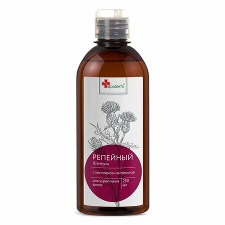 Отвар репейника традиционно применяется как средство для укрепления и восстановления волос. Шампунь Apotek's Репейный обогащен сбалансированным комплексом витаминов В5, Н, А, Е. Регулярное применение шампуня поможет укрепить корни волос и восстановить их по всей длине. Помогает восстанавливать поврежденную структуру волос. Питает волосы. Объем: 250 мл.