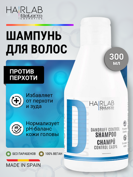 Шампунь для волос против перхоти профессиональный отшелушивающий с пиритионами цинка. Лечение кожи головы, ежедневное применение HAIR LAB by Salerm Dandruff Shampoo 300 мл