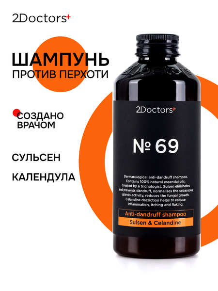 Наш шампунь№69 - это профессиональное средство для глубокой очистки и ухода за кожей головы, разработанное врачом дерматологом. Он эффективно борется с перхотью, себорейным дерматитом, корочками на голове, а также нормализует работу сальных желез, предотвращая избыточную жирность кожи. Шампунь подходит как для мужчин, так и для женщин. Состав: * Сульсен: эффективный компонент, известный своими противогрибковыми свойствами, подавляющий рост грибков Malassezia globosa, являющихся основной причиной перхоти. * Чистотел: обладает противовоспалительными и антибактериальными свойствами, успокаивает раздраженную кожу головы и снимает зуд. * Салициловая кислота: отшелушивает ороговевшие клетки, устраняет корочки и шелушение кожи головы. * Органическая Сера: борется с воспалением, очищает и регенерирует кожу головы. * Репейное масло: питает и укрепляет волосы, стимулирует их рост, придает волосам блеск и силу. Преимущества: * Профессиональный состав: разработан врачом дерматологом, подходит для глубокой очистки и ухода за кожей головы при себорее и перхоти. * Нсодержит сульфатов, которые могут пересушивать кожу головы и волосы. * Натуральный: не содержит силиконов и синтетических отдушек, не нарушает микрофлору эпидермиса. Результат: * Здоровая, чистая кожа головы без перхоти и шелушения. * Уменьшение зуда и раздражения. * Нормализация работы сальных желез. * Более здоровые, сильные и блестящие волосы. Позвольте шампуню №69 от 2Doctors вернуть вашей коже головы здоровье и красоту!