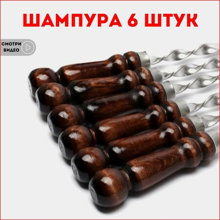 Шампуры подходят для приготовления любого мяса: свинина, говядина, баранина, курица, люля-кебаб; шампиньоны, овощи. При этом во время приготовления деревянные ручки не нагреваются, и можно подавать блюдо к столу, не снимая его с шампура. Шампуры изготовлены из пищевой стали марки AISI, а значит готовить на них безопасно, ведь при нагреве они не выделяют никаких веществ. Они способны выдерживать высокие температуры нагревания и не подвергаются образованию ржавчины. Их легко мыть. В Шампурах с деревянной ручкой, сами ручки выполнены из бука, покрашены морилкой и покрыты тремя слоями качественного, огнестойкого лака. Ручка в этих шампурах - это настоящее произведение искусства из обработанного бука. Лак не стирается, а цвет ручки не выгорает на солнце. Характеристики одного шампура: Длина рукояти: 12 см Ширина стали: 10 мм, Толщина: 2,5 мм, удобны для больших кусков мяса, за счет толщины шампур не гнётся. Рекомендации по уходу за шампурами: После того как вы приготовили блюдо, шампуры необходимо тщательно очистить щеткой или губкой от мелких кусочков продуктов и жира. Если они не сильно загрязнены, их можно промыть моющим средством и обычной губкой. После того как вы их промыли, дайте им хорошо просохнуть. Необходимо также обжигать шампуры сразу после готовки — благодаря этому жир на них не засохнет, а остатки еды сгорят. После обжига шампуры нужно протереть тряпкой. Этот прекрасный набор шампуров долго прослужит Вам и станет отличным подарком на 23 февраля/подарок мужу/папе/дедушке/сыну/брату/подарок маме/подарок в женский день 8 марта/подарок на день рождения/подарок для девушки/мужчины/подарок на новый год/рождество/подарок коллеге/подарок сестре/Подарок на 14 февраля, день святого валентина/подарок на новоселье/подарок другу. Также ищут: Шампура; шампура с деревянной ручкой; набор шампуров; шампуры; шампура для мангала с деревянной ручкой; набор шампуров подарочный; шампуры для мангала; шампур; шампура набор; набор шампуров с деревянной ручкой; шампуры с деревянной ручкой.
