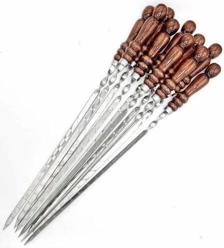 Достоинства:Цена приемлемая, удобные. Недостатки:Чуток гнутые были пришлось выпремлять. Комментарий:Шампура хорошие метал толстый, пришлось чуток подточить