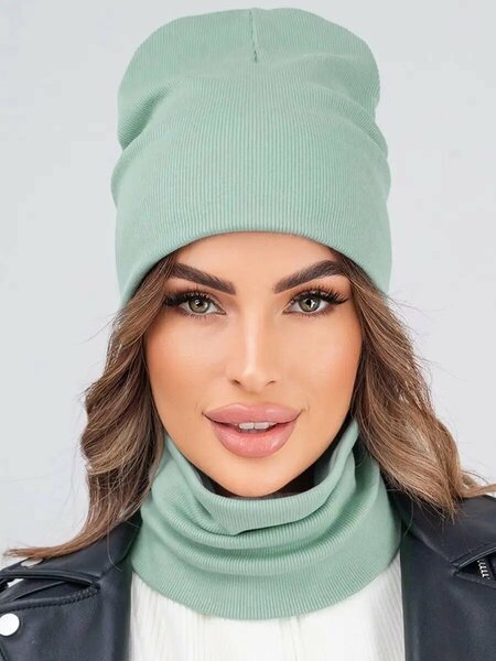 Стиль в деталях! Комплект из шапки бини и снуда в рубчик выполнен из невероятно нежной хлопковой пряжи. Благодаря базовому однотонному цвету женская шапка и шарф-труба идеально впишутся в любой осенний и весенний образ. Набор не только спасет от ветра и холодов, но и подарит уют. Шапка для женщин станет стильным дополнением образа в прохладные дни, с которым не захочется расставаться! Вязаный комплект выполнен из кашкорсе. Благодаря добавлению лайкры мягкий трикотаж не электризуется и отлично сохраняет тепло. Демисезонные шапка с шарфом цвета хаки отлично выдерживают частые стирки и надолго сохраняют форму. Трикотажная шапочка из хлопка и снуд не колятся и бережно защищают от ветра осенью и весной. Зеленая шапка станет удобным атрибутом для похода на работу или учебу и активного отдыха на природе. Набор шапка и снуд идеален для повседневных длительных прогулок. Рекомендованный температурный режим от +10 °C до -10 °C.