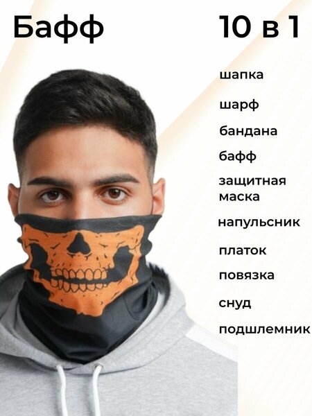 Шарф-труба, Бафф, Бандана-труба для спорта и активного отдыха. Бандана-труба хорошо сочетается с любой одеждой, ее можно носить как шапочку, балаклаву, маску, шарф или напульсник. Она отлично подходит для охотников, рыбаков, мотоциклистов. Материал тонкий, но прочный, впитывает лишнюю влагу, быстро сохнет, защищает от ветра, пыли, солнца. Края не прошиты, чтобы бафф лучше тянулся. Материал тонкий, чтобы кожа лучше дышала, но при этом очень прочный, в холод греет, в жару защищает от солнца. В конце осени, зимой и в начале весны шарф бафф станет надёжным спутником для тех, кто ценит тепло и комфорт. Бафф можно надевать не только как шарф трубу или маску на лицо, но и как шапку на голову. Послужит креативным и приятным подарком для ваших друзей и семьи. Особенности: Хорошо выводит влагу и быстро сохнет Высокое качество изготовления Мягкая и удобная, хорошо сидит на лице Имеет универсальный размер, хорошо тянется. Размер 50х25 см. Материал полиэстер