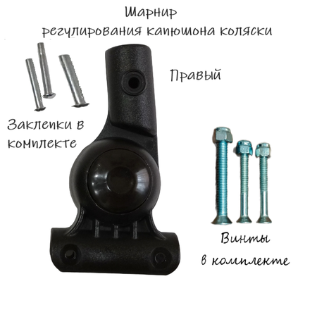 Данный шарнир регулирования капюшона подходит для большинства моделей колясок. Он крепится на трубу диаметром 16 мм, что обеспечивает надёжную фиксацию. Преимущества: