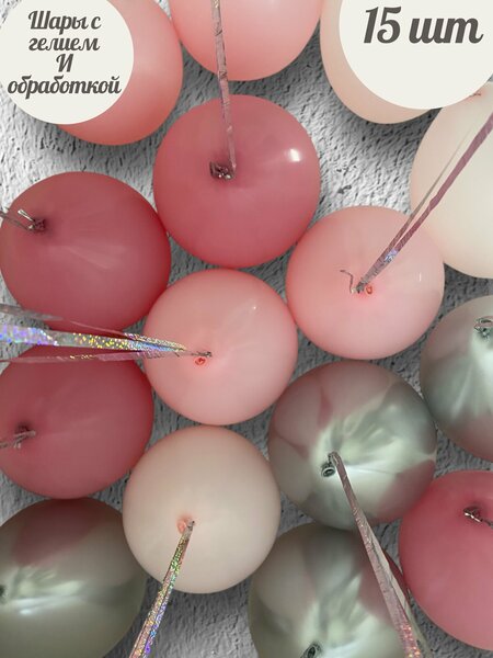 Шары с гелием под потолок Латексные шары обработаны специальным составом для длительного полета Размер 35 см Цвет: - розовый макарун - фуксия макарун - розовый - хром серебро Шары с гелием под потолок "Зефир" представляют собой набор из 15 штук воздушных шаров, наполненных гелием. Изготовленные из латекса, они обеспечивают прочность и долговечность, а их овальная форма и однотонный принт делают их привлекательными и стильными. Особенностью этих шаров является их невероятно нежный цвет в сочетании с зеркальным блеском серебра, которые придают им особый шарм. В комплект шаров входит атласная лента розовая длиной примерно 1,5 м, что позволяет легко и быстро украсить помещение, создавая праздничную атмосферу. Шары наполнены гелием, что обеспечивает их длительное парение под потолком, создавая эффектное и незабываемое зрелище, которое будет радовать гостей на протяжении всего праздника. Шары подходят для использования на различных праздниках, таких как свадьба, девичник, день рождение, знак внимания экстравагантной девушке на День Всех Влюбленных, на 8 марта, на свадьбу и конечно же в самый нежный праздник - для новорожденных девочек. Они станут отличным дополнением к тематическим вечеринкам и сделают любое событие ярким и запоминающимся.