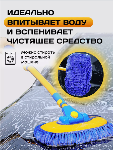 Щетка для автомойки является гибкой и может поворачиваться в пределах 90 градусов для легкой мойки автомобиля. Изогнутая под углом 15 градусов конструкция снижает вероятность случайных царапин. Швабра для автомойки может решить ваши различные потребности в уборке! Отлично подходит для мытья автомобилей, мотоциклов, окон, пыли, детских горок и аксессуаров для дома. Трехсекционная телескопическая ручка от швабры имеет три положения длины (50 см, 75 см и 102 см), каждое из которого может фиксироваться замком, поэтому вы с легкостью сможете помыть все части авто, колеса, крышу, грузовики и. т. д. Пластина щетки из полипропилена, ворс щетки из микрофибры с длинными ворсинками, хорошо впитывает влагу и не оставляет следов.