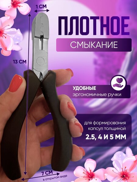 С такими щипцами Вы сможете капсулировать срезы, фиксировать прядь, делать коррекцию волос и укреплять капсулы при наращивании. Специально разработанный инструмент для профессиональных мастеров, с помощью которого можно легко и быстро создать ровную капсулу. Размеры: длина 14.5 см, ширина 6.2 см.
