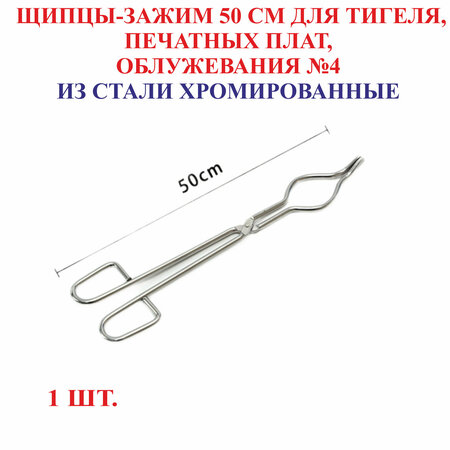 Щипцы-зажим для тиглей — инструмент для захвата и переноса горячей посуды из пламени горелки или спиртовки, с плитки, из муфельной или тигельной печи. Для захвата печатных плат, для облужевания. Они изготовлены из прочных металлов, что позволяет им выдерживать очень высокую температуру при соприкосновении с горячими предметами. Технические характеристики: Длина 500 мм; Материал сталь. -Подходит для манипулирования кусочками опасных химических веществ; -На кончиках щипцов для прочного захвата нанесены насечки; -Просты в использовании.