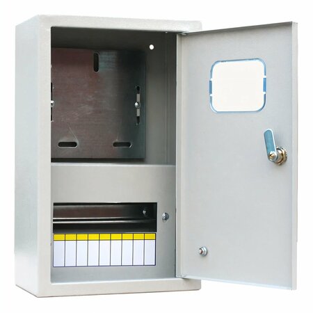 Степень защиты: IP31 Толщина металла: 0,8-1 мм Цвет: RAL 7035 Комплектация: замок, 2 ключа, оцинкованная DIN-рейка, оцинкованная лента для крепления шин N и PE, оцинкованная панель для крепления счётч Габаритные размеры: 400х250х150 мм Вес: 3,3 кг Наружный учетный распределительный щит ЩРУ-1Н-9 IP31 — это сочетание проверенного качества и надежности отечественного производства. Практичный металлический корпус, предназначенный для последующего крепления аппаратных модулей, оснащен необходимой комплектацией для сборки. Компактность и удобная форма обеспечивают востребованность работы щита в жилых, промышленных и коммерческих зданиях. Наружный учетный распределительный щит ЩРУ-1Н-9 IP31 имеет специальное окошко и запирающуюся на замок дверцу, что позволяет следить за показаниями счетчика, не открывая корпуса. Долговечность и стабильность работы изделия обеспечена степенью защиты IP31. Специальное покрытие щита, устойчивое к царапинам, не только подчеркивает эргономичный внешний вид, но и придает дополнительную