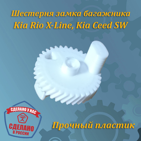 Шестерня привода замка багажника KIA Rio X-line, KIA Ceed SW (1G), изготовлена методом 3D печати на профессиональном оборудовании. Шестерня является аналогом оригинальной детали. В комплекте: 1 шестерня. Подходит для автомобилей: KIA Rio X-line I рестайлинг KIA Ceed SW I рестайлинг Обратите внимание, изделия изготовленные методом 3д печати имеют слоистую текстуру. Это не является дефектом. И не влияет на качество изделия. Цвет шестерни может быть случайным.