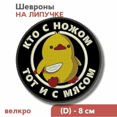 Шеврон на липучке, нашивка на велкро "Желтая утка - Кто с ножем, тот и с мясом" 80мм, Фабрика Вышивки
