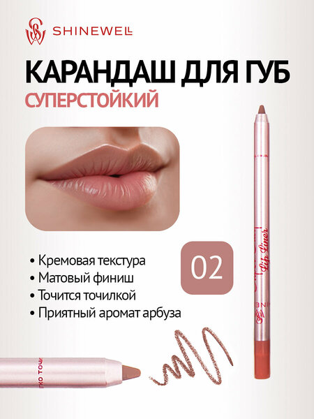 Устойчивый карандаш для губ от SHINEWELL - незаменимый beauty аксессуар для вашего макияжа. Гелевый карандаш для губ коричневого (капучино, шоколад, карамель), малинового, бордового, розового, алого, рубиного, красного и нюдового оттенка с плотной текстурой. С фруктовым (ягодным) арбузным запахом. Благодаря водостойкой гелевой формуле карандаш с колпачком обеспечивает стойкий матовый эффект, который сохранится на протяжении всего дня. Корпус популярного карандаша выполнен в пластике, его удобно точить точилкой, поддерживая тонкую форму карандаша. Он не менее удобный, чем карандаш для губ автоматический. Прекрасно подойдёт для создания профессионального мейкапа (make up), подчеркивая форму губ, добиваясь идеального супер естественного и светлого нюдового тона. Стойкий карандаш для губ подходит как для повседневного, дневного макияжа, так и для вечернего яркого образа. Лайнер для губ пудрового цвета — это настоящий бьюти аксессуар, который поможет вам выглядеть стильной и сияющей. Кремовая текстура карандаша очень нежная, что позволяет наносить его не только по контуру, но и на всю поверхность губ вместо темной губной помады. Гипоаллергенный карандаш имеет мягкую текстуру, которая обеспечивает легкое нанесение и растушевку, создавая естественный объем и контур для губ красиво увеличивая их. Помада карандаш для губ позволяет экспериментировать с мейком и получать превосходные результаты начинающим и опытным визажистам. Lipliner также можно использовать для контуринга. Мягкий, нежный, но плотный карандаш для губ стойкий разработан специально для чувствительной и сухой кожи. У серии Super Stay богатая большая палитра разных сатиновых и нюдовых оттенков. В наборе 1 штука, в ассортименте 10 оттенков: от нюдовых до ярких. Насыщенные пигменты представлены в классических цветах. Карандаш для губ устойчивый и не стирается, держится весь день. Он не течет и не тает если его сочетать с блеском или жидкой помадой, держится на губах в течение всего дня. Карандаш для губ нюдовый идеален для неброского, естественного макияжа. Этот вид косметики подходит девочкам подросткам и взрослым женщинам, которые ценят хорошую качественную косметику. Он маленького размера и с легкостью поместится в органайзере или дорожной косметичке. Универсальный натуральный нюд оттенок подойдет для любого типа кожи и возраста. По качеству карандаши для губ SHINEWELL не уступают корейским и белорусским оригиналам. Это прекрасный подарок маме, сестре или подруге на день рождения, 8 марта или Новый год. Дарите радость родным и сияйте вместе с Shinewell!
