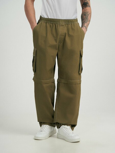 Представляем Вам мужские брюки карго от бренда твое. Эти штаны выполнены в классическом стиле y2k, который идеально подойдет для подростков и школьников. Они легко превращаются в шорты благодаря удобным молниям по бокам, позволяя адаптироваться к изменениям погоды. Они имеют прямой крой, широкую посадку и удобные завязки снизу, что делает их идеальным выбором для повседневной носки. Благодаря большой размерной сетке, каждый сможет подобрать для себя подходящий размер. Штаны выполнены из 100% хлопка, что обеспечивает комфорт и легкость в носке. Боковые карманы предоставляют дополнительное пространство для хранения мелких вещей. Цвет хаки придает брюкам стильный и модный вид, который легко сочетается с любым верхом. Они могут быть использованы как спортивные, так и офисные, в зависимости от Вашего стиля и настроения. Брюки весенне-летней коллекции от твое - это свободные, легкие и брендовые, которые сделают Ваш образ уникальным и неповторимым. Наслаждайтесь комфортом и качеством от бренда твое!