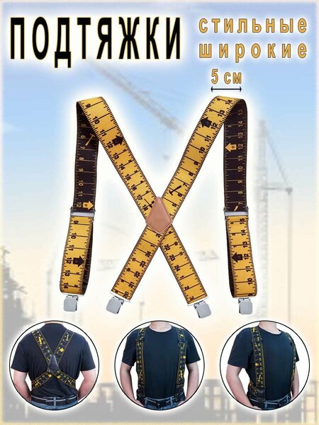 Подтяжки широкие универсальные – это стильный и практичный аксессуар, который станет незаменимым дополнением к любому гардеробу. Изготовленные из прочного полиэстера, они обеспечат надежную поддержку и комфорт в течение всего дня. Широкие лямки равномерно распределяют нагрузку, предотвращая дискомфорт и следы на одежде. Универсальный дизайн подтяжек позволяет носить их с брюками, джинсами и шортами, создавая стильный и завершенный образ. Подтяжки (5 сантиметров лямки), с металлическими зажимами изготовлены из прорезиненного полиэстера с прочными креплениями на брюки (ремень). Оснащены регулируемыми плечевыми ремнями, передними и задними ремнями, которые обеспечивают удобную посадку. Усиленная кожей перемычка перекрещивается на спине, помогая зафиксировать подтяжки. Боковые зажимы удобно и гибко ложатся с обеих сторон талии, уменьшая точки давления и облегчая работу. Подтяжки можно сочетать с разными стилями одежды. Они пригодятся, прежде всего, людям рабочих профессий. Но неординарно смотрятся и при повседневной носке.