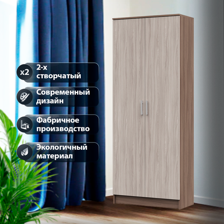 Шкаф для одежды Машенька ШК-204 ЛДСП: стильный и функциональный Вместительный и стильный 2-х створчатый шкаф Машенька ШК-204 ЛДСП станет отличным решением для хранения одежды, аксессуаров и других предметов в вашем доме. Распашной шкаф имеет две распашные двери, что обеспечивает удобный доступ к содержимому. Внутри шкафа расположены пять полок и выдвижная штанга для вешалок, что позволяет максимально эффективно использовать пространство. Корпус и фасад шкаф распашной выполнены из качественного ЛДСП, что обеспечивает долговечность и надежность конструкции. Цвет корпуса – шимо тёмный, а фасады – шимо светлый, что позволяет гармонично вписать шкаф в любой интерьер, а также использовать как шкаф в спальню, шкаф в прихожую, шкаф в гостиную, шкаф в детскую. Серебристая фурнитура из металла и пластика придает шкафу современный и стильный вид. Пластиковые ручки обеспечивают удобство использования и не требуют особого ухода. Узкий шкаф Машенька ШК204 ЛДСП имеет 2 распашные двери, что обеспечивает удобный доступ к содержимому. Размеры шкафа составляют (ШхВхГ) 800х2020х385 мм, что позволяет разместить его даже в небольших помещениях. 2х створчатый шкаф поставляется в разобранном виде, что облегчает его транспортировку и установку. Выбирая двух створчатый шкаф Машенька ШК 204 ЛДСП, вы получаете стильное и функциональное решение для хранения вещей в вашем доме.