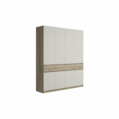 В нижней части шкафа три перегородки на расстояниях 482мм(боковые отделения) 475мм(два центральных отделения) и 4 полки по центру (по одной полке за каждой створкой).