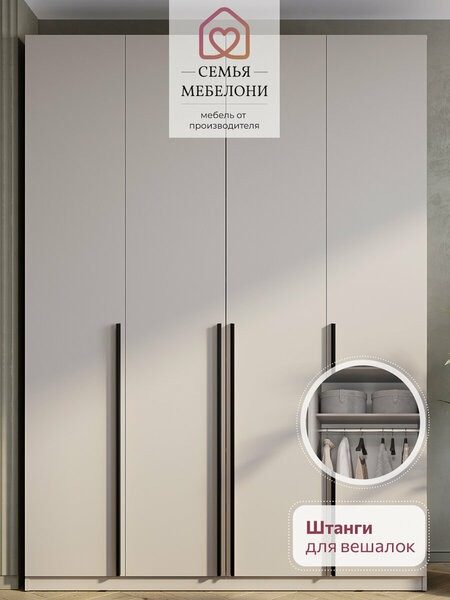 Шкаф Айрон – универсальное решение в гардеробную для хранения вещей, адаптирующиеся к любому дизайну. Место внутри шкафа легко структурировать. Этому способствуют распашные двери и четырехстворчатый отсек с полками. Комфортный доступ к верхней одежде обеспечит 4-х створчатое платяное отделение с вешалкой со штангой. Детская обувь также найдет свое место в прихожей. Постельное белье и гардероб удобно разместятся в шифоньере, тем самым помогая в организации пространства спальни или гостиной. Размеры шкафа (ширина 160 см, высота 222 см и глубина 52 см) подобраны так, чтобы он занимал минимум площади, что делает его отличным выбором для большой комнаты или коридора. Наша корпусная мебель за счет своего современного стиля и высокого качества удачно дополнит вашу квартиру или дом, сочетая практичность со стильным внешним видом.