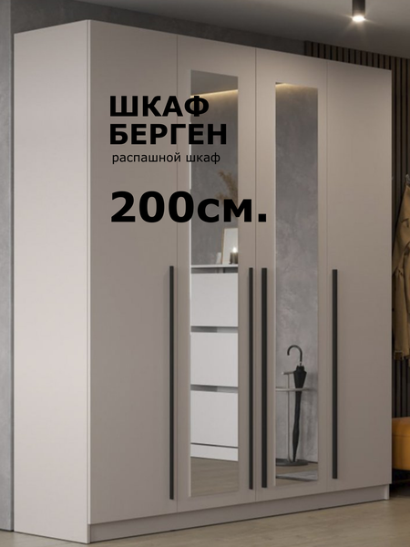 Шкаф "Берген" ШК-2000 с зеркалами - Кашемир - это современное и функциональное решение для хранения одежды, обуви и аксессуаров. Дизайн и материалы: Шкаф выполнен в бежевом цвете, что позволяет ему гармонично вписаться в любой интерьер. Материал фасада - ЛДСП, а материал корпуса - ЛДСП. Фурнитура изготовлена из металла и пластика, что обеспечивает прочность и долговечность конструкции. Комплектация и размеры: Шкаф имеет 4 секции и 9 полок, что позволяет разместить большое количество вещей. Размеры шкафа составляют 220 см в высоту, 200 см в ширину и 52 см в глубину. Установка и использование: Шкаф "Берген" устанавливается на пол и имеет распашные двери, что обеспечивает удобство использования. В комплекте идут инструкция и необходимая фурнитура для сборки. Особенности и преимущества: Шкаф оснащен штангой для вешалок, что позволяет хранить одежду на плечиках. Расположение зеркала в центре шкафа придает ему стильный и современный вид. Дополнительная информация: Шкаф поставляется в разобранном виде, что облегчает его транспортировку и установку.