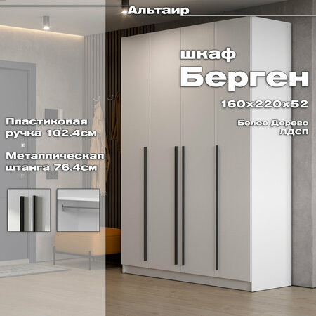 Шкаф распашной Берген ШК-1600 - это стильное и функциональное решение для хранения одежды, обуви и аксессуаров. Изготовленный из качественного ЛДСП, этот шкаф станет отличным дополнением к интерьеру вашей комнаты или прихожей. Дизайн шкафа выполнен в минималистическом стиле, что позволяет ему гармонично вписаться в любой современный интерьер. Шкаф оснащен четырьмя распашными дверями, что обеспечивает удобный доступ к содержимому. В комплекте идет горизонтальная штанга и полки, что позволяет разместить большое количество одежды и аксессуаров. Фурнитура выполнена из прочного пластика и металла, что гарантирует долгий срок службы и надежность конструкции. Ручка шкафа имеет длину 1024 мм и изготовлена из пластика, что делает ее удобной и безопасной в использовании. Размеры шкафа составляют 1600 мм в ширину, 2200 мм в высоту и 520 мм в глубину, что позволяет разместить его даже в небольших помещениях. Цвет корпуса / фасада - Белое дерево Материал корпуса / фасада - ЛДСП Ширина / Высота / Глубина - 1600 / 2200 / 520 (мм) Ручка: пластик 1024 мм