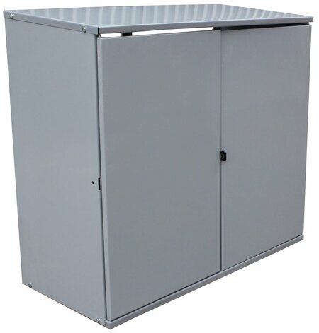 Шкаф для двух пропановых баллонов 27 литров серый ГШ 27-2 Габариты шкафа (В*Ш*Г): 740*800*370 мм Качественное порошковое покрытие Цвет: серый Рал 7035 Толщина стали: 0,8 мм В комплекте крепеж М6, ушко навесного замка Крыша с наклоном, окошко для газопровода Возможна правая и левая навеска двери Поставляется в разобранном виде Инструкция по сборке в комплекте Упаковка: трёхслойный гофрокартон Вес в упаковке: 17кг Габариты упаковки (В*Ш*Г): 850*430*100 мм
