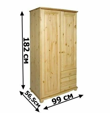 Оригинальный деревянный шкаф – функциональный, простой и внешне привлекательный элемент, который вписывается в любой интерьер. Универсальное изделие подходит для обустройства спальни, детской и прихожей комнаты. Изготовлен из массива сосны, что создаст прочность и долговечность мебели. Материал выдерживает нагрузки, устойчив к влаге. Поверхность шкафа покрыта прозрачным лаком, что предохраняет мебель от загрязнений. Отличительной особенностью данного шкафа является ширина дверей (она составляет 50 см) и качество финишной обработки поверхностей. Внутри достаточно места, чтобы разместить весь свой повседневный гардероб. Внутреннее наполнение: Конструкция состоит из двустворчатого отделения, за дверцами которого расположились продольная штанга с одной стороны и полки для белья - с другой. Для хранения аксессуаров и мелких вещей шкаф располагает тремя выдвижными ящиками. Фурнитура: Комплектуется деревянными ручками «Грибок» (5 штук). Опорами служат круглые ножки, обеспечивающие устойчивость конструкции. Направляющие - металлические шариковые. Задняя стенка, днища ящиков - ДВП (оргалит). Шкаф для одежды обладает следующими особенностями: · Экологически чистый материал – натуральная сосна. · Изделие поставляется в разобранном виде. · Цветовое решение – Сосна натуральная/Лак. · Финишное покрытие – лак на водной основе, без вредных компонентов, защищает от различных воздействий и придает блеск. Шкаф распашной отличается функциональностью и универсальностью использования, поэтому он идеально впишется в городской или дачный интерьер. Модуль предназначен для организации хранения предметов гардероба, белья и прочих видов одежды. Цвет мебели может незначительно отличаться от фото в карточке по причине различной цветопередачи устройств.