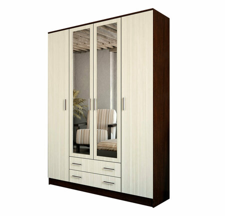 Современный дизайн и стильное исполнение выделяют шкаф «Квадро» среди других представителей данного типа. Модель корпусной мебели является оригинальной, функциональной и практичной. Шкаф очень вместительный, поэтому запросто может служить сразу двум людям. Оснащён широкой продольной штангой, выдвижными ящиками и полками для белья. Оригинальное зеркало на фасаде модели позволит оценить внешний вид во весь рост и визуально расширит пространство. Основные габариты - 160*48*220 см (ширина/глубина/высота)