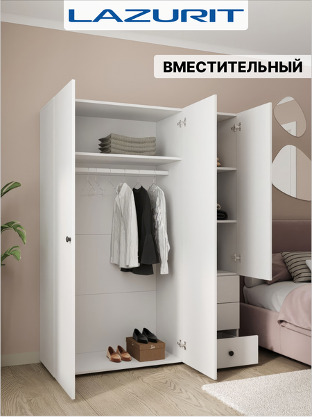 Шкаф для одежды "Эльбрус" от Lazurit – стильное и функциональное решение для вашего дома! Ищете шкаф распашной, который идеально впишется в интерьер? Наш шкаф для одежды деревянный – это не просто мебель, а продуманное пространство для порядка и уюта! Почему стоит выбрать этот шкаф? - Универсальность – подходит как шкаф в прихожую, шкаф в спальню или шкаф детский. - Вместительность – шкаф с полками (4 уровня) и ящиками (3 шт.) для удобного хранения вещей, а за дверцами шкафа можно хранить одежду на вешалках. - Комфортная организация – шкаф со штангой на удобной высоте (отлично подойдет для шкафа детского). - Стильный дизайн – шкаф белый с черными ручками впишется в любой интерьер. - Дополнительные возможности – можно дополнить антресолью (5380736166) для еще большего удобства. - Надежность – шкаф платяной изготовлен из качественного ЛДСП с прочной фурнитурой. Идеальное решение для любого помещения: Шкаф в прихожую – удобное хранение верхней одежды. Шкаф в спальню – порядок в вещах и аксессуарах. Шкаф в детскую – удобная высота штанги для ребенка. Шкаф пенал напольный легко собирается (как у икеа) и станет вашим надежным помощником в организации пространства. Закажите шкаф для одежды "Эльбрус" прямо сейчас и создайте идеальный порядок в доме! LAZURIT BASIC – это линейка практичной мебели от известного бренда LAZURIT. Мы создали её для тех, кто ценит разумную экономию, но не готов жертвовать надежностью. Упрощенные конструкции, проверенные материалы и лаконичный дизайн - всё, что нужно для комфорта, только доступнее. Внимание! Проверяйте комплектацию при распаковке. Рекламации по недостающим деталям принимаются только с видео вскрытия упаковки.