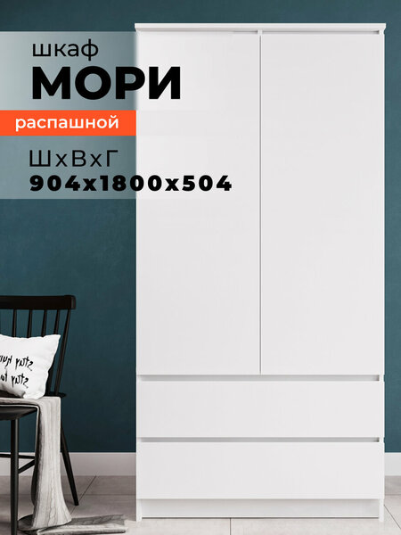 Шкаф для одежды Мори МШ 900.1 – стильное и функциональное решение для хранения одежды и других предметов. Произведенный в России, этот шкаф отличается высоким качеством и продуманным дизайном. Минималистичный дизайн и белый цвет делают этот шкаф подходящим для любого интерьера, будь то спальня, детская, прихожая, гостиная или офис. Шкаф распашной состоит из двух секций: левая сторона оборудована съемными полками на полкодержателях, а правая - хромированной штангой для вешалок. В нижней части расположены два выдвижных ящика на роликовых направляющих, которые отлично подходят для хранения постельного белья. Особенностью шкафа является система открытия фасадов "Touch-to-open", которая позволяет открывать ящики и двери без использования ручек. Это делает использование шкафа еще более удобным и практичным. Размеры шкафа в гостиную составляют 180 см в высоту, 90 см в ширину и 51 см в глубину. Корпус и фасад выполнены из качественного ЛДСП, а фурнитура - из металла. Выбирая шкаф напольный Мори МШ 900.1, вы получаете стильное, функциональное и практичное решение для хранения одежды и других предметов.