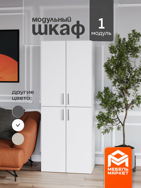 Модуль 1 шт Полки 2 шт Штанга 1 шт Вся необходимая фурнитура в комплекте Напольная установка обеспечивает устойчивость и надежность конструкции. Выбирая шкаф с полками Twin белый, вы получаете стильный, функциональный и практичный предмет мебели, который станет незаменимым помощником в хранении одежды, аксессуаров и других вещей.