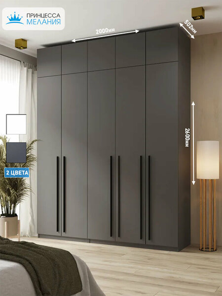 Представляем вашему вниманию распашной шкаф для одежды с пяти дверями и антресолью, который станет идеальным решением для вашего интерьера. Этот вместительный шкаф выполнен в стильном графитовом цвете, что делает его универсальным дополнением как для спальни, так и для прихожей или детской комнаты. Размеры шкафа составляют 2600х2000х520 мм, что обеспечивает достаточно пространства для хранения одежды и аксессуаров.
