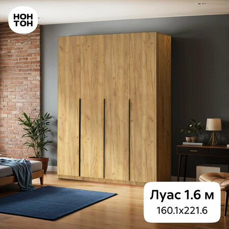 Шкаф для одежды Луас – это современное и функциональное решение для хранения одежды. Изготовленный из качественного ЛДСП, он обладает прочным корпусом. Особенностью данной модели является конструкция, которая позволяет максимально эффективно использовать пространство в комнате. Шкаф распашной оснащен дверями, за которыми находятся штанга для вешалок и полки. Это обеспечивает удобное размещение одежды и аксессуаров. Этот шкаф четырехстворчатый имеет ширину 160.1 см и высоту 221.6 см, что позволяет разместить в нем большое количество вещей. При этом глубина составляет 50.6 см, это обеспечивает достаточное пространство для хранения вещей. Шкаф в прихожую выполнен в современном стиле и цвете, благодаря чему он может гармонично вписаться в любой интерьер, сочетаясь с комодом, прикроватной тумбой, кроватью и другой мебелью. Выбирая шкаф Луас от бренда Нонтон, вы получаете стильное, функциональное и надежное решение для хранения одежды.
