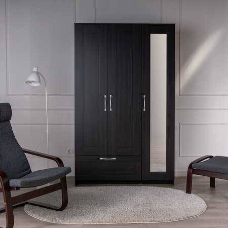 ГУД ЛАКК - знакомая мебель, которую легко купить и собрать! Шкаф ГУД ЛАКК СИРИУС, 3 двери и 1 ящик, 190x117x50 см, с зеркалом — элегантность и качество в каждой детали! Серия мебели СИРИУС вдохновлена популярной серией BRIMNES от IKEA, и станет идеальным дополнением вашей квартиры. Почему выбирают ГУД ЛАКК СИРИУС, 3 двери и 1 ящик, 190x117x50 см, с зеркалом? Шкаф СИРИУС — это стильное и функциональное решение для хранения, которое сочетает в себе практичность, элегантный дизайн и продуманную организацию пространства. Филенчатые фасады придают шкафу изысканный вид, делая его украшением любого интерьера, а зеркало позволит подобрать идеальный образ. Внутри шкафа расположена прочная платяная штанга, на которой можно разместить одежду на плечиках, сохраняя ее в идеальном состоянии. Просторное внутреннее пространство с тремя дверцами позволяет организовать хранение одежды, обуви, аксессуаров или других вещей. Внешний выдвижной ящик с удобной ручкой предназначен для хранения мелких вещей, аксессуаров или белья. Его можно использовать, не открывая дверцы шкафа, что делает доступ к вещам быстрым и удобным. Так же внутри есть 4 полки, которые можно отрегулировать по высоте для разных вещей. Шкаф имеет оптимальные размеры, что делает его подходящим для небольших помещений, таких как спальни, прихожие, гостевые комнаты или даже гардеробные. Он не занимает много места, при этом остается вместительным. Шкаф СИРИУС — это идеальное сочетание стиля, функциональности и доступности. Он станет надежным помощником в организации хранения, создании уютной атмосферы и поддержании порядка в вашем доме. Благодаря своему универсальному дизайну и продуманной конструкции, этот шкаф будет радовать вас долгие годы! УЗНАВАЕМЫЙ ДИЗАЙН В СТИЛЕ СКАНДИНАВСКОГО МИНИМАЛИЗМА. Шкаф с филенчатым фасадом — это элегантное решение, которое добавляет изысканности, и может использоваться в любых интерьерах. Удобные ручки без острых краев одновременно элегантны и безопасны. Утопленная нижняя планка добавляет комоду легкости и воздушности. ВМЕСТИТЕЛЬНЫЕ ЯЩИКИ. Здесь удобно хранить белье, одеяла и подушки, обувь книги, или мелочи, и многое другое, что обязательно должно быть у Вас под рукой. ЭКОЛОГИЧНОСТЬ. Наша мебель производится на заводе полного цикла по принципу «от древесины до готового изделия». При этом применяются максимально жесткие требования к экологичности на уровне, установленном для детской мебели. КАЧЕСТВО НА УРОВНЕ IKEA. Шкаф СИРИУС изготовлена на сертифицированной фабрике в Беларуси, которая ранее производила мебель для шведского бренда. Кстати, в том числе поэтому наш ассортимент прекрасно сочетается с мебелью ИКЕА, которая, возможно, есть у Вас дома. Сочетается как по дизайну, так и за счет совпадения цветовой гаммы. ЛЕГКОСТЬ СБОРКИ. Вы можете сами легко и быстро собрать нашу мебель, что позволит сэкономить и время на ожидание сборщика, и деньги на оплату его услуг. А поможет в этом не только высокое качество изготовленной мебели, но и понятная пошаговая инструкция. Кстати, если вы вдруг потеряли инструкцию, ее всегда можно скачать здесь, в карточке товара. НАДЕЖНОСТЬ. Несмотря на то, что гарантийный срок на мебель по закону составляет 24 месяца, реальный срок службы нашей мебели составляет до 20 лет. Уж поверьте, сменить обстановку вы решите гораздо раньше, чем выйд