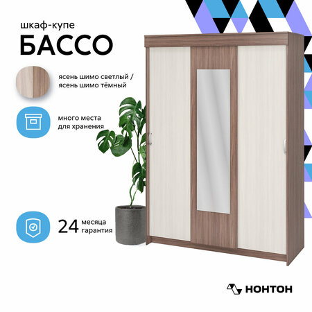 Шкаф купе Бассо - стильное и функциональное решение для организации пространства в доме. Шкаф для одежды выполнен в лаконичном дизайне, универсальном и легко вписывающимся в интерьер. Вы сможете сочетать этот гардероб с другими комодами, тумбами и пеналами. Шкаф-купе Бассо выполнен из ЛДСП. Шкаф содержит боковые полки и штангу для вешалок. Полезная глубина шкафа 43 см. Монтаж зеркала к фасадам производится самостоятельно на двусторонний скотч и/или кляймеры. Обязательно для крепления необходимо использовать монтажный клей «жидкие гвозди». Скотч и кляймеры в комплекте. Сборка не универсальная. Шкаф купе — это удобный и практичный вариант. Он идеально подойдет для прихожей, спальни или гостиной. Выбирайте шкаф-купе Бассо для максимального комфорта и эстетики в вашем доме.