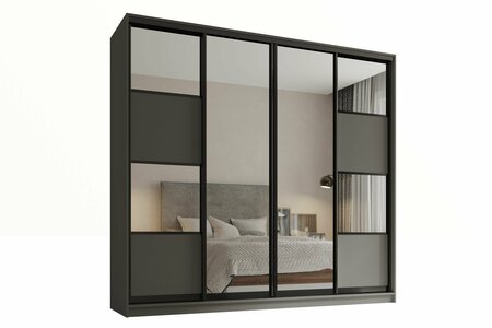 Четырехстворчатый шкаф купе Линц 4 обладает широким спектром применений и отлично впишется как в прихожую, так и в спальню. Его оригинальные фасады украшены зеркальными вставками и декоративной планкой, окрашенной в тон алюминиевого профиля дверей, что придает изделию легкость и современный внешний вид. Конструкция шкафа для одежды предусматривает установку штанги для развешивания одежды, причем если глубина изделия составляет менее 60 сантиметров, то используется выдвижная штанга, позволяющая эффективно использовать внутреннее пространство. Оформление фасада выполнено в одном из оттенков палитры коллекции, что позволяет гармонично интегрировать шкаф для прихожей в существующий интерьер и поддержать выбранную стилистику помещения.