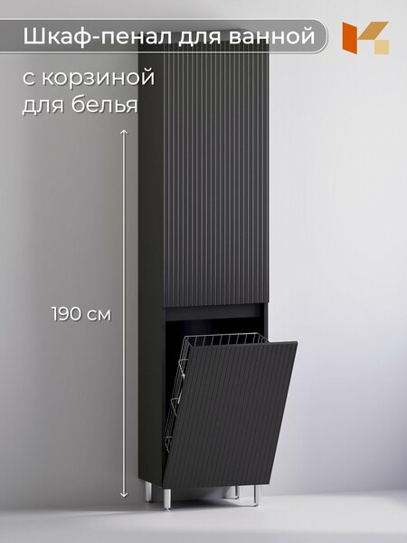Шкаф пенал в ванную комнату напольный с корзиной Риф - это идеальное решение для организации пространства в вашей ванной. Выполненный в стильном черном матовом цвете, этот шкаф добавит современный акцент в интерьер, сочетая практичность и элегантность. Шкаф-пенал для ванной предлагает не только достаточное количество места для хранения, но и функциональный элемент в виде корзины для белья. Это позволяет удобно скрыть грязное белье, обеспечивая порядок и чистоту в ванной комнате. Компактный размер позволяет без труда расположить пенал даже в небольших помещениях, не занимая много места. Качественные доводчики обеспечивают легкое и плавное открывание и закрывание дверец, что делает использование шкафа максимально комфортным. Черный шкаф станет универсальным элементом, гармонируя с различными стилями оформления и другими предметами мебели в вашем интерьере. Шкаф с корзиной способен удовлетворить все ваши потребности в хранении, обеспечивая легкий доступ ко всем необходимым вещам. Его функциональное и эстетическое исполнение станет отличным дополнением любой ванной комнаты.