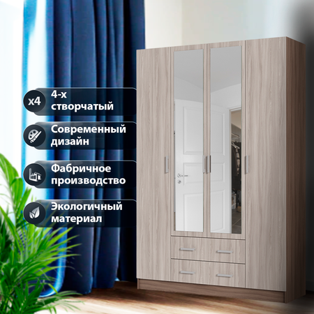 Шкаф для одежды Гармония ШК602М - это сочетание стиля, функциональности и качества. 4х створчатый шкаф Гармония ШК 602М имеет размеры 1600х2200х500 мм, что позволяет разместить в нем большое количество одежды. Шкаф распашной выполнен из ЛДСП цвета шимо тёмный/шимо светлый и делает его стильным дополнением к любому интерьеру. Особенностью шкафа является его наполнение: в нем предусмотрены полки, ящики и штанга для вешалок. Это обеспечивает удобное хранение одежды и позволяет использовать пространство максимально эффективно и позволяет его использовать как шкаф спальню, шкаф в детскую, шкаф в гостиную, шкаф в прихожую. Четырех створчатый шкаф с зеркалом Гармония ШК 602 М оснащен 4 распашными дверями, что обеспечивает удобный доступ к содержимому. Фурнитура выполнена из металла, что гарантирует прочность и долговечность конструкции. Распашной шкаф идет с зеркалом, которое позволяет визуально увеличить пространство и сделать его более светлым. 4-х створчатый шкаф Гармония ШК602 М - это не просто шкаф для одежды, это стиль, функциональность и качество в одном продукте. Этот цвет легко сочетается с различными оттенками и материалами, что позволяет вписать шкаф в любой интерьер. Шкаф для одежды поставляется в разобранном виде, что облегчает ее транспортировку и установку. Все упаковки упакованы в плотный картон, что обеспечивает сохранность мебели при перевозке.
