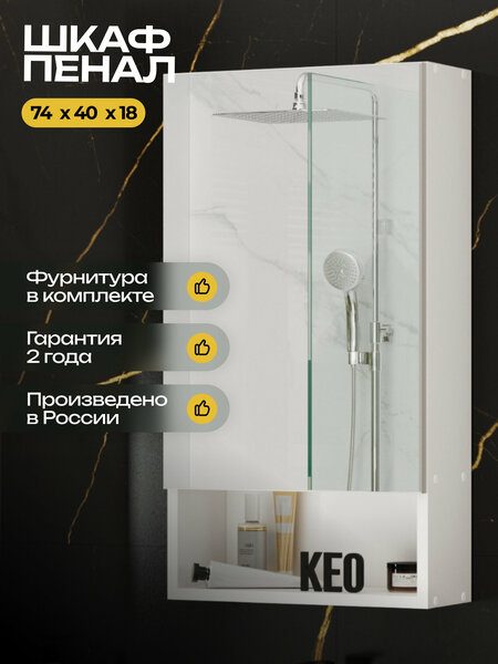 Навесной шкаф с зеркалом Кео ШКН-140 - это стильное и функциональное решение для хранения вещей в ванной комнате, прихожей или гостиной. Шкаф имеет две распашные двери, за которыми скрываются три полки. Это позволяет разместить в нем большое количество вещей, от посуды до одежды. Шкаф оснащен надежными креплениями, что гарантирует его устойчивость и безопасность использования. Подробная комплектация включает в себя шкаф навесной в разобранном виде, инструкцию и всю необходимую фурнитуру. Выбирая навесной шкаф с зеркалом Кео ШКН-140, вы получаете стильное, функциональное и надежное решение для хранения вещей в вашем доме или офисе. Навесной шкаф с зеркалом - идеальное решение для тех, кто хочет добавить в свою ванную и прихожую элемент стиля и функциональности. Этот шкаф станет незаменимым помощником в хранении ваших туалетных принадлежностей, аксессуаров и других мелочей. Зеркало на дверце шкафа позволяет вам оценить свой внешний вид в любое время, а также визуально расширяет пространство помещения. Особенностью данного шкафа является возможность собирать дверцу зеркально, что позволяет вам выбрать наиболее удобный вариант для вашего интерьера. Это добавляет удобства и гибкости в использовании шкафа, делая его идеальным выбором для любого дома. Благодаря съемным полкам, вы сможете настроить расстояние между полками в соответствии с вашими потребностями и хранить на них различные предметы. Надежные крепления в комплекте, позволяют шкафу выдерживать большую нагрузку. Шкаф изготовлен из безопасного ЛДСП толщиной 16 мм, класс безопасности ЛДСП Е1. Размеры и допустимая нагрузка: Внутренние полки выдерживают нагрузку до 10 кг каждая; Суммарно шкаф выдерживает нагрузку до 40 кг. Преимущества изделия: Зеркало в комплекте; Компактный и вместительный; Расстояние между полками позволяет разместить высокие бутылки; Современное открывание без ручек - предусмотрен зазор снизу дверцы; Суммарно выдерживает большую нагрузку. Сочетается с мебелью от Keo.