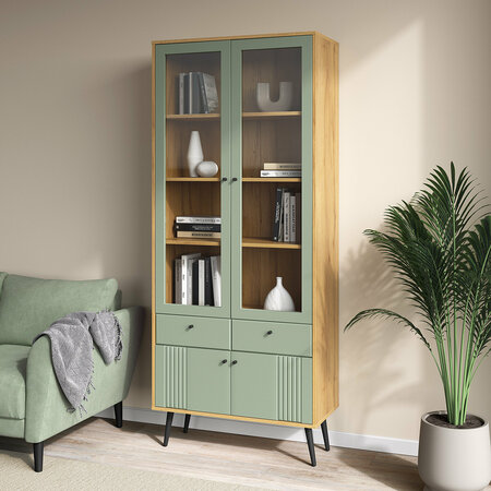 Шкаф-витрина Кураж Вега Саксония двухдверная 83.4х40х200 см, с ящиками, зеленая