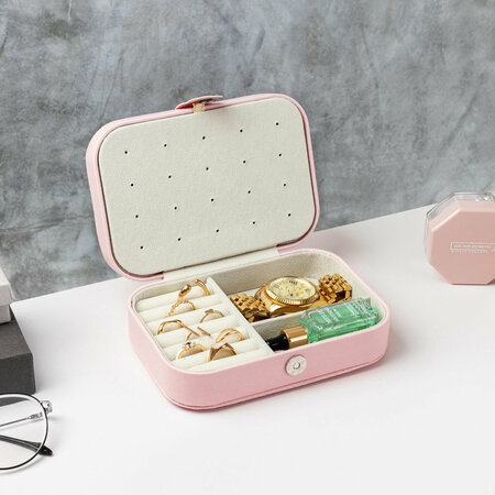 Шкатулка для ювелирных украшений маленькая CLOX с замком позволит бережно хранить ваши кольца, серёжки, браслеты, часы и другие любимые украшения в одном месте. Кейс имеет прямоугольную форму и миниатюрный размер, отличный дорожный вариант. Изготовлен из качественной, износостойкой искусственной кожи. Внутренняя отделка выполнена из мягкого бархата, позволяет защитить ваши украшения от царапин и прочих повреждений. В крышке находятся специальные крючки и кармашек для хранения цепочек и браслетов, защищающие их от спутывания. В нижнем отделении размещены валики для серёжек и колец. Компактная коробочка, выдержана в благородном стиле, классических цветах. Стильный органайзер для серег оснащен удобными отсеками с разделителями, для бережного хранения драгоценностей, бижутерии, цепочек, браслетов, часов, сережек, свадебных колец и самого ценного в одном месте. Благодаря классическому дизайну коробки для хранения она идеально впишется в любой интерьер и займет свое место на прикроватной тумбе, комоде, столе, в гостиной, спальне или детской комнате. Футляр для мелочей идеальный подарок сестре на др, дочке, девочке для хранения заколок и резинок, подруге, жене, девушке, любимой бабушке, коллеге, на любой праздник: юбилей, свадьбу, на день рождения, 8 марта, новый год, юбилей, новоселье. Шкатулочка для обручальных колец имеет надежный замок молнию