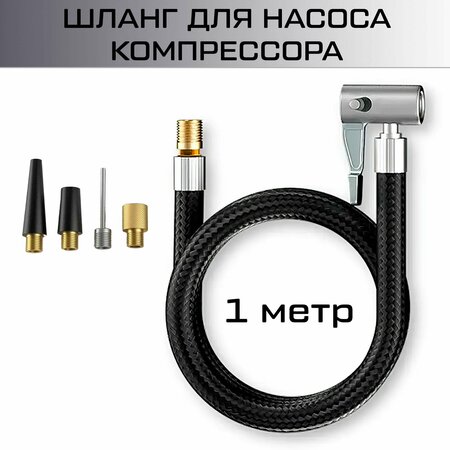 Шланг для насоса компрессора 100 см с головкой, штуцером и набором насадок, ремкомплект насоса