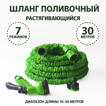 Садовый шланг может расширяться с 10 метров до 30 метров в длину, что позволяет охватить весь сад, делая полив простым и эффективным. Внутренний слой шланга состоит из телескопической трубки TPE (который не твердеет зимой, устойчив к износу, старению и не имеет запаха), а внешний слой — из плетеной оболочки. Под давлением воды шланг растягивается. Полученный вами шланг имеет начальную длину 10 м (это не ошибка), и после подачи воды его длина увеличивается до 30 м. Длина удлинения зависит от давления воды: чем выше давление, тем лучше эффект удлинения. В большинстве регионов давление воды соответствует требованиям. Если в вашем регионе давление воды слишком низкое, будьте осторожны при покупке. (Минимальное давление, необходимое для растяжения: 2 бар.) После выключения воды шланг в течение нескольких минут возвращается к своей исходной длине, становится компактным и легким, не запутывается и не занимает много места. При длительном хранении просто слейте воду из шланга и храните его в сухом и прохладном месте. Обычные же шланги занимают слишком много места, их трудно компактно сложить для хранения и нужно аккуратно сматывать, чтобы не создавать изломы, которые со временем превращаются в трещины. Входящий в комплект распылитель с 7 режимами использования может распылять воду от мягкого тумана для полива цветов до мощной струи для мытья автомобиля с дальностью до 5 м. Эргономичная ручка удобна для длительного использования. Подходит для множества задач, таких как мытье окон, автомобилей, полов, дворов, полив сада и чистка домашних животных. Если Вам не хватает длины, можете соединить несколько в один, или присоединить к обычному. Один шланг справится с множеством задач.