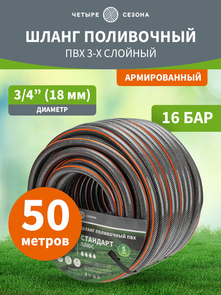 Трехслойный армированный поливочный шланг: надежный помощник для вашего сада на 50 метров Ищете надежный и универсальный шланг для полива больших площадей? Трехслойный армированный поливочный шланг – это то, что вам нужно! Он обладает множеством преимуществ, которые делают его идеальным выбором для: Эффективного полива: диаметр 3/4" обеспечивает мощный поток воды, достаточный для быстрого и равномерного орошения даже самых больших садов, огородов и фермерских хозяйств. Долговечности: изготовлен из высококачественного ПВХ с армированием, что гарантирует ему высокую прочность, стойкость к механическим воздействиям, УФ-излучению, перепадам температур и морозам. Универсальности: подходит для использования на садово-огородных участках, в теплицах, питомниках, фермерских хозяйствах и других местах. Удобства: длина 50 метров позволяет охватить большую площадь без необходимости в частых перестановках шланга, а гибкость шланга обеспечивает комфортное использование даже в труднодоступных местах. Всесезонности: широкий диапазон рабочих температур (-10°C/+40°C) позволяет использовать шланг в любое время года, независимо от погодных условий. Шланг 3/4" 50 м – это: Мощный и эффективный полив. Безупречная надежность и долговечность. Универсальность и практичность. Комфорт использования. Технические характеристики: Материал: ПВХ Диаметр: 3/4" (19 мм) Длина: 50 м Толщина стенки: 2,5 мм Рабочее давление: 10 бар Диапазон температур: -10°C/+40°C