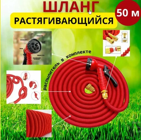 Внимание: наши шланги НЕ "восток стиль" и других подобных марок представленных на площадке! (шланги "Восток стиль" и подобные продаются в пакетах и сильно уступают по качеству материалов и надежности шлангам Magic Garden). Шланги Magic Garden продаются только в фирменных коробках! Чудо шланг Magic Garden Hose Xhose 50 метров - это новая улучшенная версия шланга С металлическим соединением, что придает больше прочности, увеличенным в 5 раз по сравнению с обычным шлангом. Его секрет в усовершенствованных материалах и использованной технологии 3d-нано: прочное и гибкое внутреннее покрытие позволяет сжиматься и разжиматься в несколько раз, а новое износостойкое внешнее покрытие сделало его более устойчивым к внешним воздействиям и загрязнениям. При необходимости несколько шлангов можно соединить между собой. Изготовлен шланг из тканного полиэфирного полотна и латексной трубы, насадка-распылитель из прочного пластика. Главным достоинством поливочного шланга является его легкость и компактность. Шланг увеличивается в размерах при подаче воды, а при ее отключении уменьшается, становясь необычайно удобным для переноски и хранения. Благодаря уникальной конструкции шланга в процессе его использования не возникают изломы и скручивания. Шланг состоит из внутренней жесткой прослойки из двухслойного латекса и внешнего слоя из нейлона. Это универсальное приспособление. В комплекте идёт такой же поливочный пистолет, который работает в 7 разных режимах, но вот соединение стало не пластиковым, а металлическим, что придаёт большей прочности. Исходные состояние 10 метров - при растяжке 50 метров. Для полного растяжение шлангов минимальное давление 2 бар, рекомендуемое рабочее давление 6 бар. При первом включении распылитель должен быть в рабочем режиме, чтобы шланг полностью растянулся.