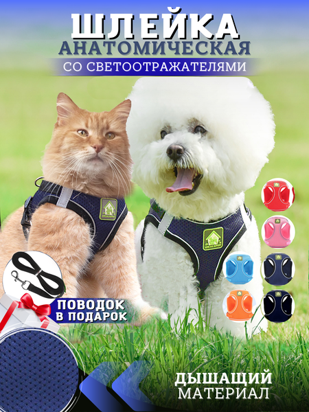 Внимание! При подборе размера шлейки учитыавайте ВЕС вашего питомца. При определение точного размера, ЭТО очень важно! Для подбора размера шлейки рекомендуем ориентироваться на фото с размерами, если нет возможности произвести замеры питомца, то рекомендуем ориентироваться на отзывы наших покупателей. Шлейка для собак и кошек - идеальный выбор для комфортных и безопасных прогулок! Наша анатомическая шлейка специально разработана для обеспечения максимального комфорта вашему питомцу. Она идеально подходит как для средних и маленьких собак - французскиого бульдога, таксы, йорка, шпица, пекинеса, пуделя, так и для котов, например для мейн куна или сибирской кошки. Шлейка выполнена из легкого сетчатого материала, который позволяет животному чувствовать себя комфортно и не потеть. Светоотражающие полосы нашей шлейки гарантируют видимость вашего пса или кошачьего друга даже в темное время суток, что делает прогулки безопасными и защищенными. Регулируемые ремешки позволяют точно подстроить размеры шлейки под индивидуальные особенности вашего животного. Особая фишка нашей шлейки - удобный поводок в комплекте, которой облегчает контроль над собакой, особенно при дрессировке или в случае необходимости быстрой реакции. Это особенно важно для пород, таких как мопсы, джек-рассел-терьеры, корги и той-терьер, которые известны своей активностью и энергичностью. Мы предлагаем шлейки различных размеров, чтобы каждый щенок или взрослая собака могли насладиться комфортными прогулками. Независимо от размера вашего питомца - будь то маленький бигль или британская кошла - у нас есть подходящая шлейка для всех. Позвольте своей собачке и кошечке наслаждаться прогулками безопасно и стильно! Приобретите нашу шлейку уже сегодня и убедитесь в ее качестве и функциональности.