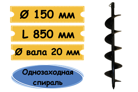 Шнек для бурения грунта МВШ-150 мм для мотобура, посадка 20 мм, пр-во "Инносфера" г. Пермь