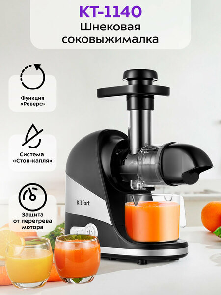 Шнековая соковыжималка KT-1140 позволяет отжимать максимально возможное количество сока из фруктов, большинства овощей и зелени с сохранением всех их полезных компонентов: витаминов, аминокислот и минералов.